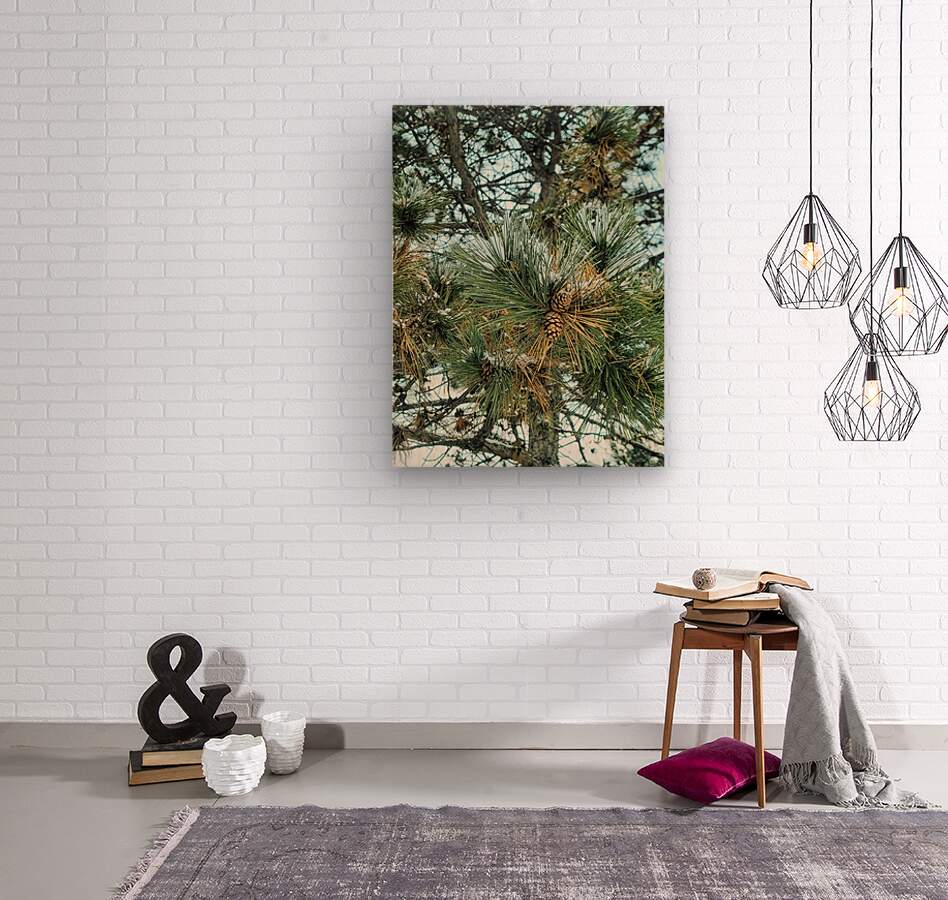 A close-up view of a snow-dusted pine tree captures the raw beauty of nature transitioning into winter. The delicate frost clinging to the needles and the clustered pine cones offer a peaceful, organic texture that brings the outdoors in. Ideal for creating a calm, earthy ambiance in any space, this print celebrates resilience, stillness, and the quiet poetry of winter landscapes.