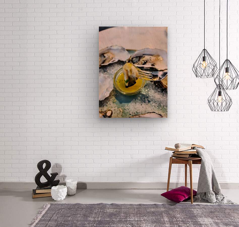 Barcelona Travel Collection- Captures a fleeting yet sensorially rich instant of indulgence—the precise moment an oyster, plucked from its shell, is dipped into a pool of golden mignonette. It's an invitation to pause, savor, and appreciate the connection between the ocean's wild bounty and the rituals of fine dining. As a wall art piece, this image offers a refined, coastal charm perfect for kitchens, dining rooms, restaurants, or boutique hotels. It’s ideal for anyone who delights in the ocean’s culinary gifts or seeks to add a bold, tasteful accent to a modern interior. The fork's poised elegance paired with the textures of salt, shell, and sauce makes it a conversation-starter—where food becomes memory, and memory becomes art.